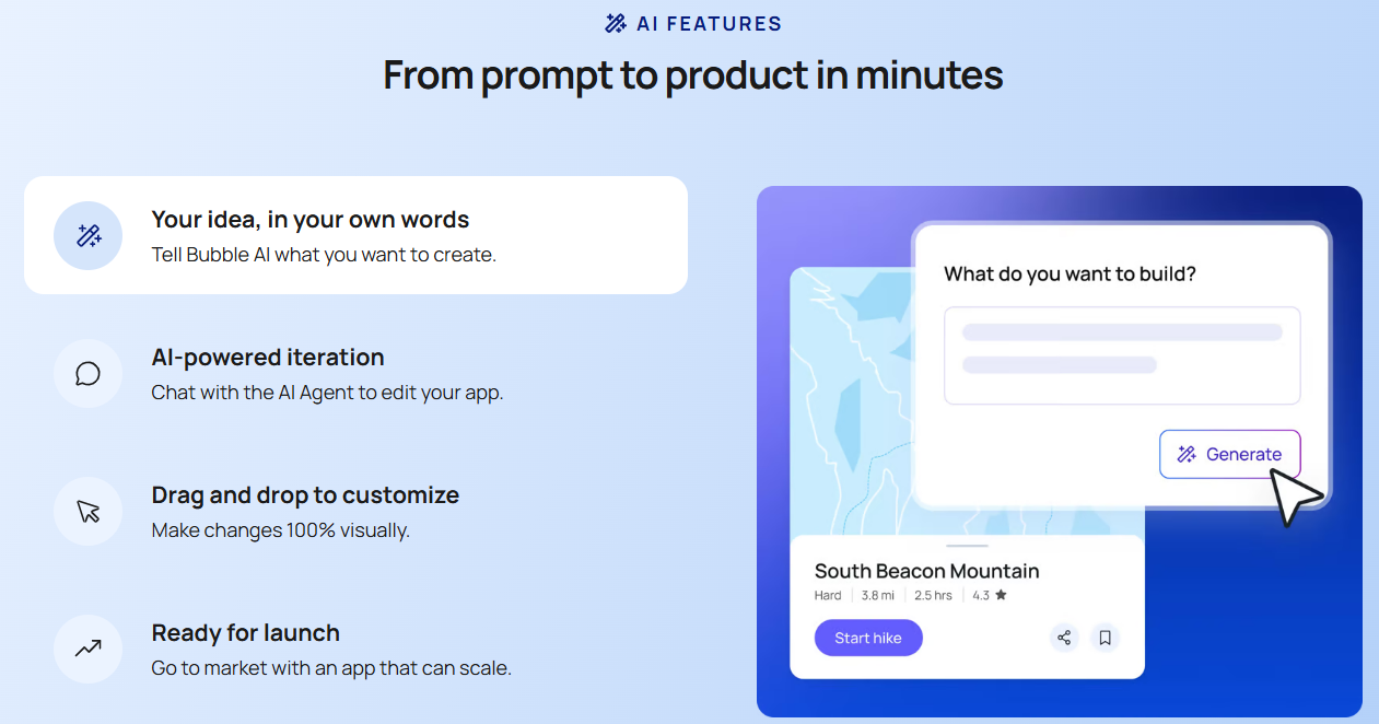 You’re not managing servers, security patches, or deployment pipelines. Bubble apps scale with your plan.