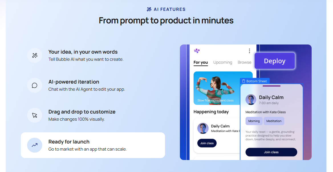 Bubble lets you build exactly what you need. No theme limitations. No plugin conflicts.