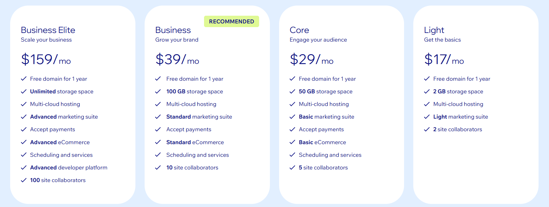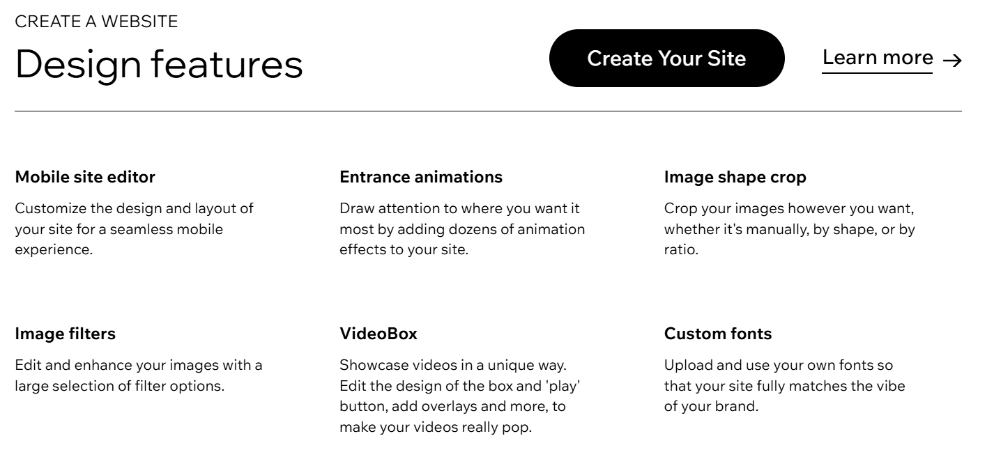 This table alone helps many choose Wix simply because of how low-maintenance it is.