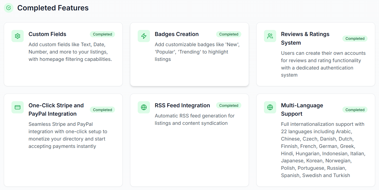 | Automatic URL Generation | Clean, readable URLs for each listing |
