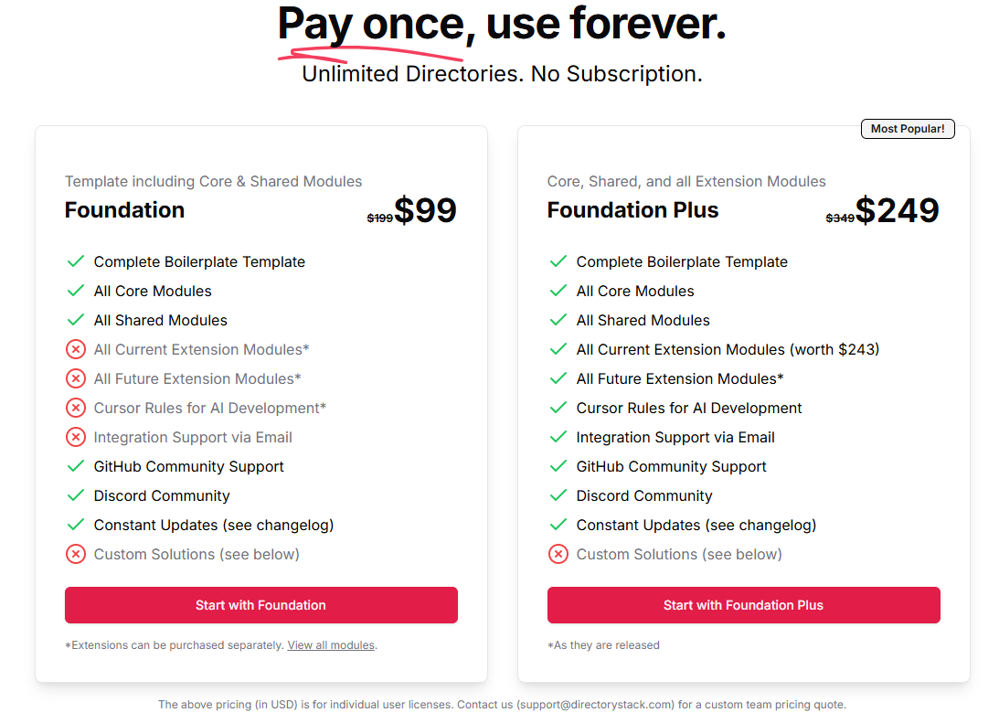 Directory Stack is positioned as a one-time investment, not a recurring SaaS subscription.