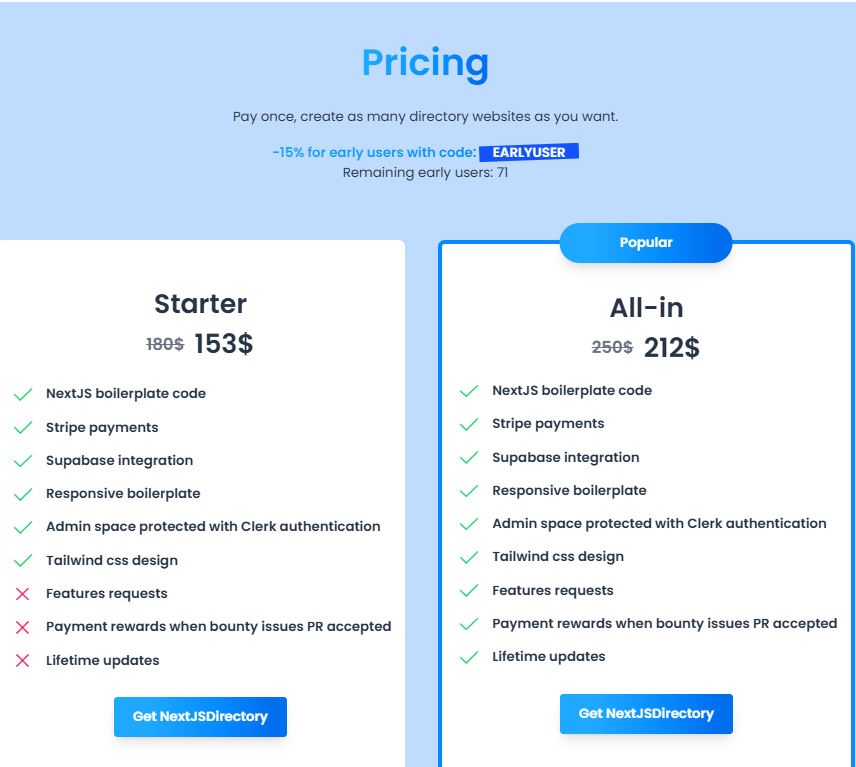 Considering what it would cost to hire a developer for even a minimal directory MVP, both pricing tiers are exceptionally reasonable. You own the full codebase, and you can scale it without relying on external SaaS limits.